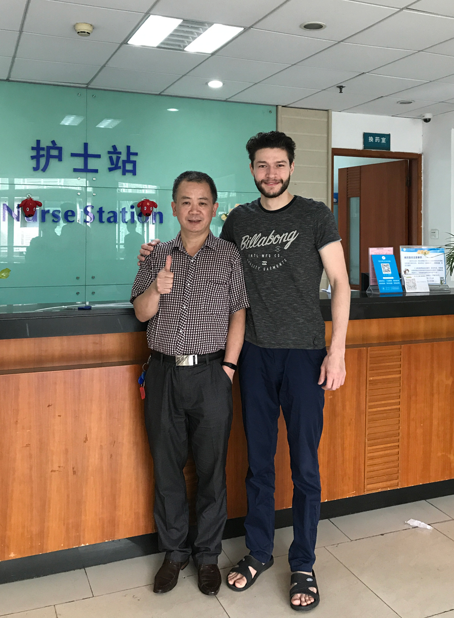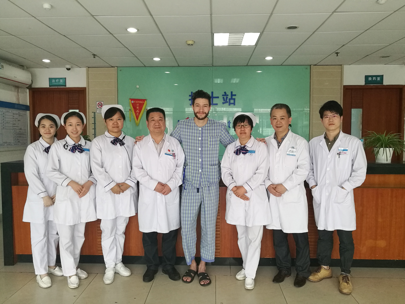 据了解,陈伟锋博士从接诊、办理住院、术前准备、麻醉、手术、术后治疗及护理直到患者出院,全程陪同,为SALAVAT诊疗过程担任“开挂式”翻译家,使SALAVAT在诊疗过程中更加放心。为了不耽误SALAVAT的工作,再评估其恢复情况后,陈博士亲自嘱咐中医药坐浴家庭护理的操作及注意事项,于手术后第三天为其办理出院。SALAVAT以中国式告别作为出院留念——“陈大哥,我们照个相吧”。