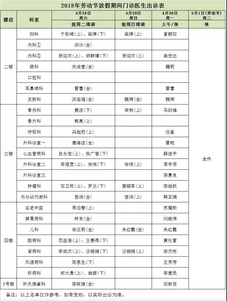 3.4月30日(星期一)上午按照门诊部(星期一)的排班出诊,下午休息。