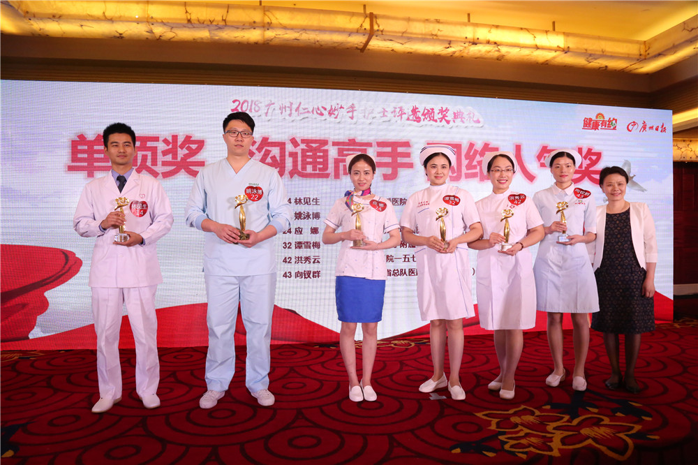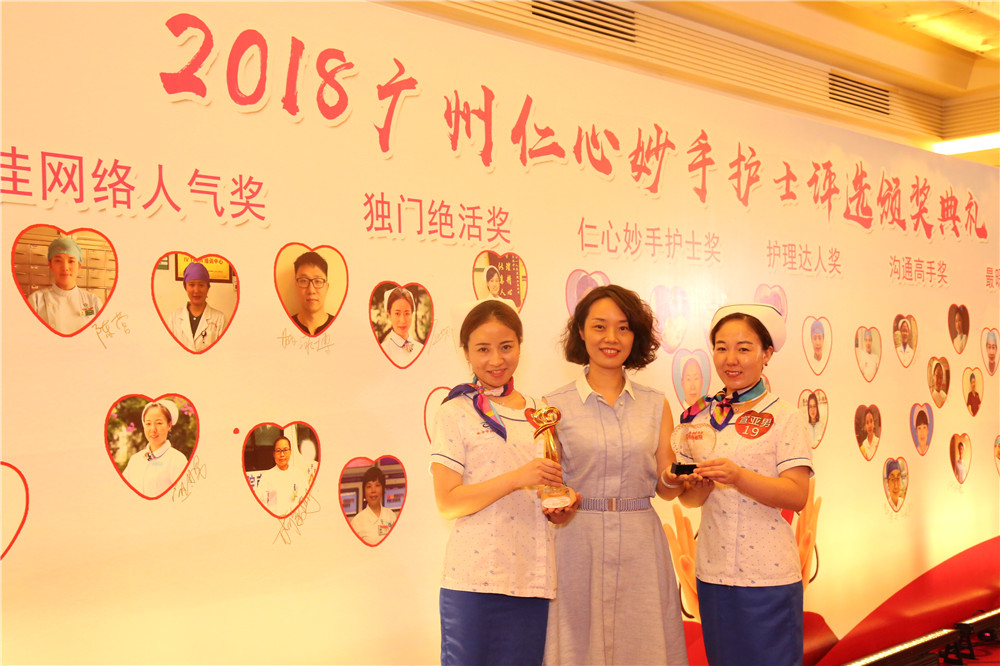 5月11日下午,由广州日报健康有约举办的“2018仁心妙手护士”评选活动颁奖典礼在广州大厦隆重举行,我院两名护士亮相领奖台,分别是风湿病科护理单元宣亚男护士长获得“护理达人”称号,外科第三护理单元应娜获得“沟通高手”称号。