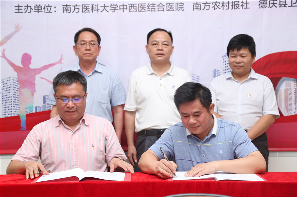 南方医科大学中西医结合医院院长、党委副书记李爱民,中共肇庆市委副秘书长谈细育,德庆县人民政府副县长张建球,南方农村报社副总编辑胡念飞,德庆县卫计局局长兼德庆县人民医院代院长莫鸿出席了活动启动仪式,并共同为2018“名医广东行”健康公益活动揭幕。