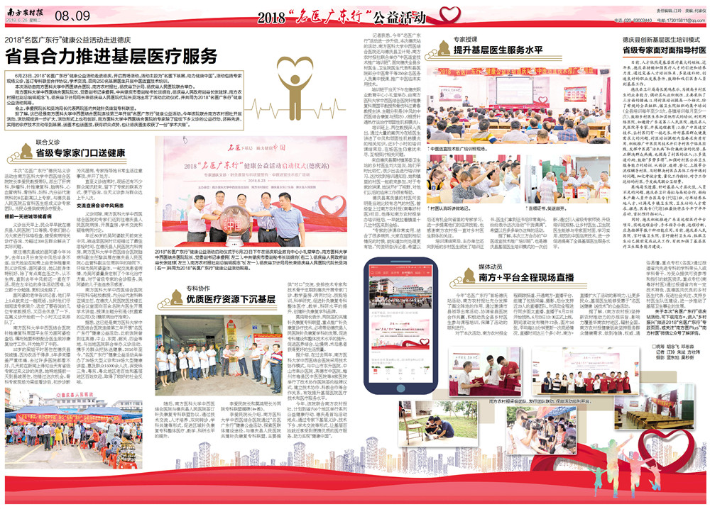 本次义诊活动,南方医科大学中西医结合医院派出了肝病科、肿瘤科、针推康复科、脑病科、心血管病科、骨伤科、妇科、内分泌代谢病科的8名副高以上专家,与德庆县人民医院五官科医生组成义诊专家团队,为民众提供疾病诊疗服务。
