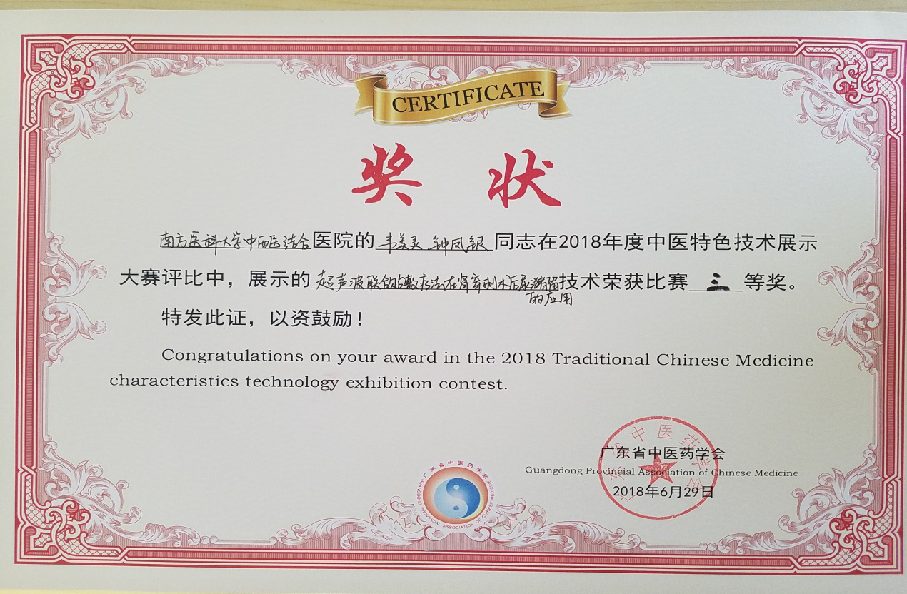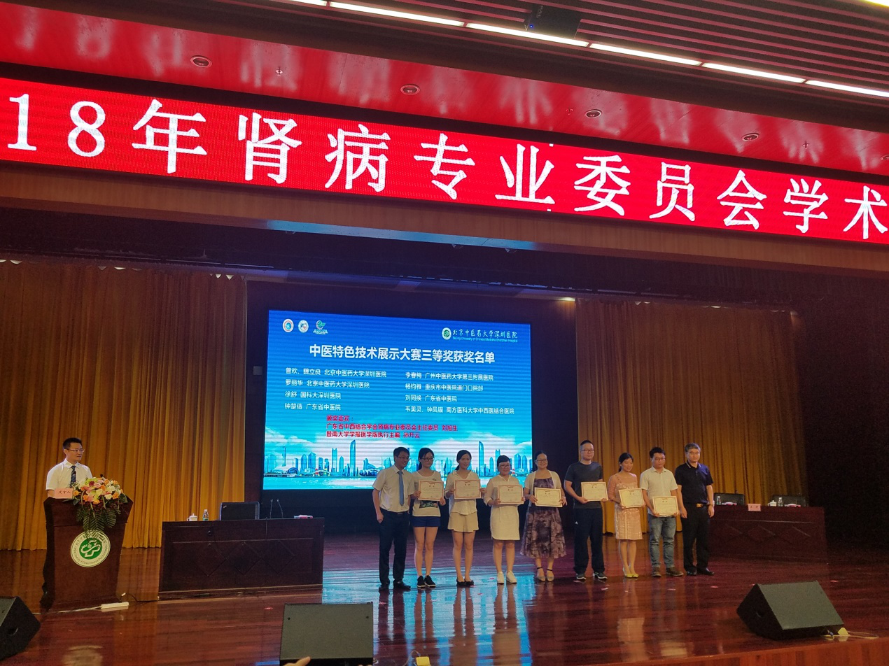 6月30日上午,由中国中医药肾脏病防治联盟、中国中医肾病特色技术应用及推广专业委员会、广东省中西医结合学会肾病特色技术应用与推广专委会共同举办的2018年肾病中医特色技术展示大赛颁奖典礼,在深圳市龙岗区北京中医药大学深圳医院隆重举行。我院肾病护理单元团队荣获三等奖。