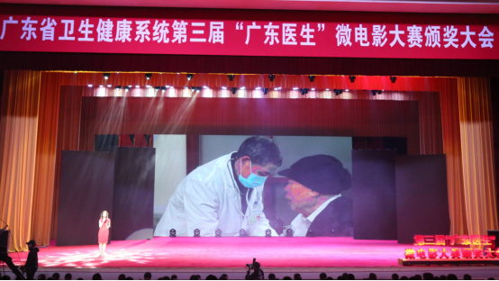 12月28日晚,由广东省委宣传部、广东省文明办、广东省直机关工委指导,广东省卫生健康委员会主办的广东省卫生健康系统第三届“广东医生”微电影大赛颁奖大会在广州珠岛会堂隆重举行。南方医科大学中西医结合医院推送的记录片《雷锋式的好医生——贺运河》喜获三等奖,由于贺运河主任因白血病复发无法来到现场,组办方联系了贺主任亲属和患者来到颁奖现场,省委宣传部副部长、省文明办主任蒋斌,省卫生健康委党组书记、主任段宇飞等领导接见了贺主任的妹妹贺桃英及儿子贺翊峰。大会现场,主持人与贺主任儿子及患者的访谈直触观众泪点。