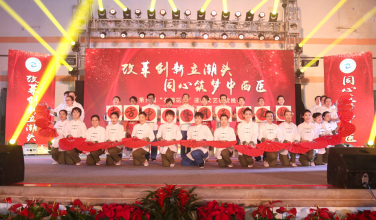 此次晚会以“改革创新立潮头,同心筑梦中西医”为主题,体现了中西医人以改革开放四十周年为契机,坚定不移跟党走,牢记使命,为健康事业甘心奉献的信心和决心。晚会节目由医院各党支部选送,党支部、科主任带头演出,共230多人参演,充分体现了群众参与度。