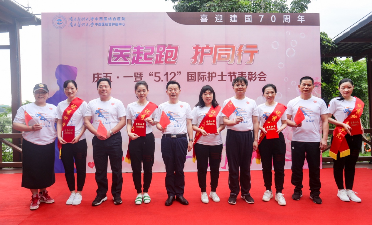 2019年5月1日,我院在广州市海珠湖公园举行“医起跑 护同行”健康公益团建活动,主要包括健身热舞、护士表彰、公益环湖跑及大型义诊活动,以致敬五四青年节、“五·一二国际护士节,向伟大祖国70周年华诞献礼,助力广东健康事业发展。医院领导、员工、志愿者近500人参与。