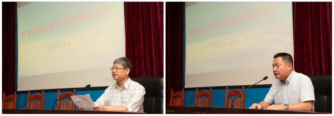 严冬书记对新任科室领导提出希望和要求:一要加强理论学习,提高政治站位。要用习近平新时代中国特色社会主义思想武装头脑,指导实践,做到真学真信真用。坚持不懈地抓作风改作风转作风,跟进学习习总书记最新重要讲话精神,学思用贯通,知信行统一,按照“守初心,担使命,找差距,抓落实”的总要求,边学边思、边改、边做。提高认识,统一思想,坚守责任担当,提高政治站位。