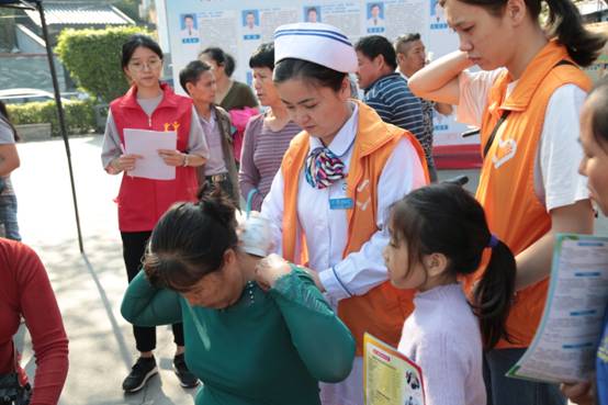 义诊现场,专家们耐心听取居民的健康需求,了解病情后,认真提供疾病治疗意见,志愿者为居民发放健康教育宣传册,给居民普及健康养生知识。针灸、刮痧、艾灸等中医操作受到不少居民的喜爱,前来治疗的人员络绎不绝,得到了周边商户、职工及居民的好评。