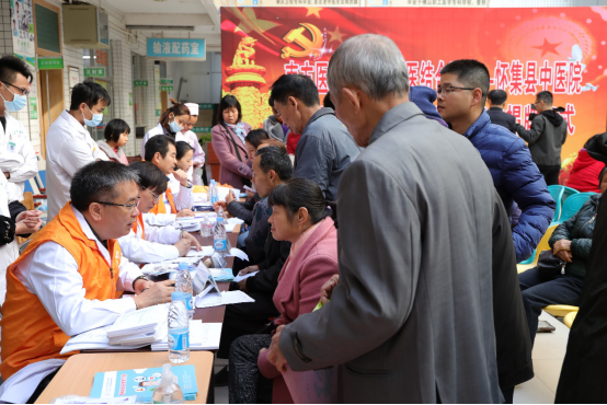 签约挂牌仪式结束后,南方医科大学中西医结合医院10名专家在怀集县中医院一楼大堂内开展“名医广东行”大型义诊活动,并提供中医保健、慢性病防治宣教,共为200余名群众提供健康服务。