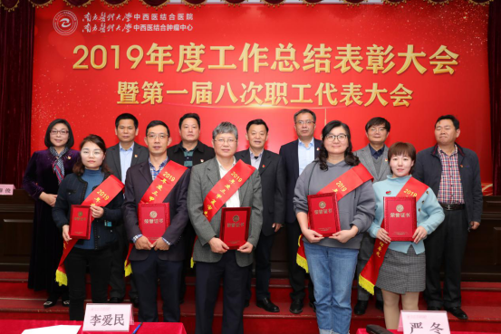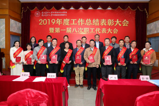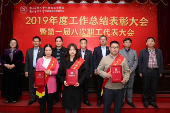 会上,彭康副院长宣读关于表彰2019年度先进单位和先进个人的通报。朱晓光副院长宣读2019年度医疗工作表彰事宜、2019年三甲复审先进单位和先进个人、2019年医保管理先进科室和先进个人的通报。马镇国副书记宣读关于表彰2019年度工会先进集体和优秀工会积极分子的通报。潘清川副院长宣读关于表彰2019年度教学先进单位及优秀个人的通报、2019年度科技奖励的通报。穆俊分管院领导宣读关于表彰2019年度获得较高荣誉和显著成果的集体和个人的通报。全体院领导为年度受表彰的单位、个人颁发荣誉证书。