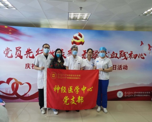为纪念中国共产党成立99周年,7月1日下午,医院组织开展“党员先行做表率,无偿献血践初心”主题党日活动。共有121名员工参加献血,献血总量达28300毫升。