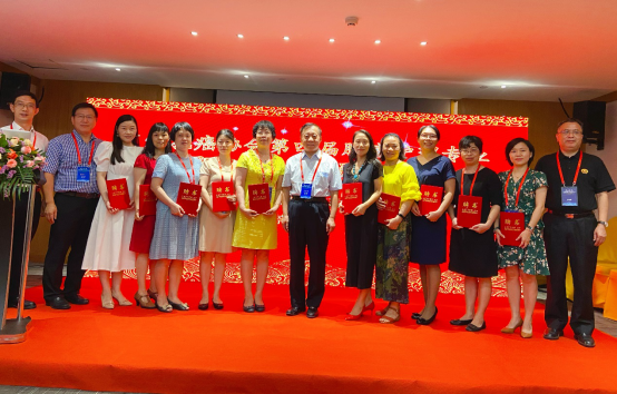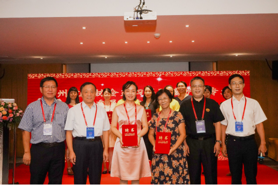 广州抗癌协会王远东监事长、李爱民副理事长、张军一秘书长为肿瘤护理专业委员会主任委员及副主任委员颁发聘书并合影