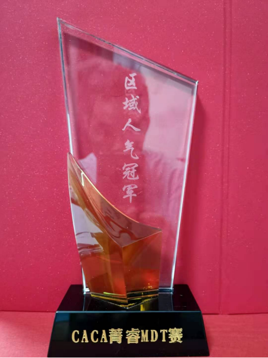 11月1日,由中国抗癌协会(CACA)主办的“菁睿学院MDT大赛”南区决赛在湖南长沙举行。我院胸部肿瘤内科(呼吸科)冯起校教授带领的MDT团队(队员:麦仲伦、谢雯芳)取得总分第二名成绩,荣获区域人气冠军奖。