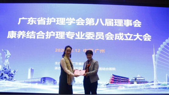 冬日暖阳,明媚美好。为响应 “健康中国2030”的战略号召,促进我省康养结合护理学专业的快速发展,提高康养结合专科护理能力,实现护理从治疗护理疾病、服务患者的传统模式转向注重疾病预防、加强健康管理、做好康复服务为主的新理念,广东省护理学会康养结合护理专业委员会成立大会于12月12日在广州召开,我院护理部主任周瑾主任护师当选为第一届主任委员。广东省护理学会成守珍理事长、广东省护理学会周丽华秘书长,南方医科大学中西医结合医院彭康副院长出席了成立大会。