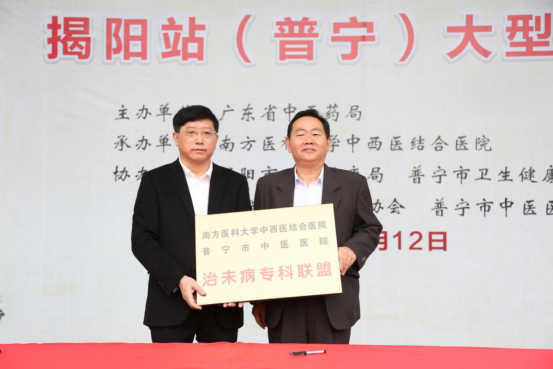 本次活动由广东省中医药局主办,南方医科大学中西医结合医院承办,揭阳市卫生健康局、普宁市卫生健康局、普宁市科学技术协会、普宁市中医医院协办。开展了大型义诊,治未病科、神经医学中心专科联盟授牌签约,抗疫事迹宣讲,中医适宜技术培训,健康养生讲座。
