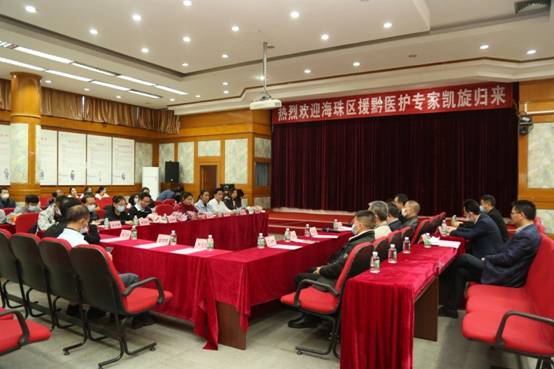 海珠区扶贫办主任卢辞介绍了今年海珠区的异地帮扶情况,感谢医疗单位、扶贫专家以及受援地政府的大力支持。他希望援黔专家讲好帮扶故事,感染身边的人,让更多的人为健康扶贫工作贡献力量。
