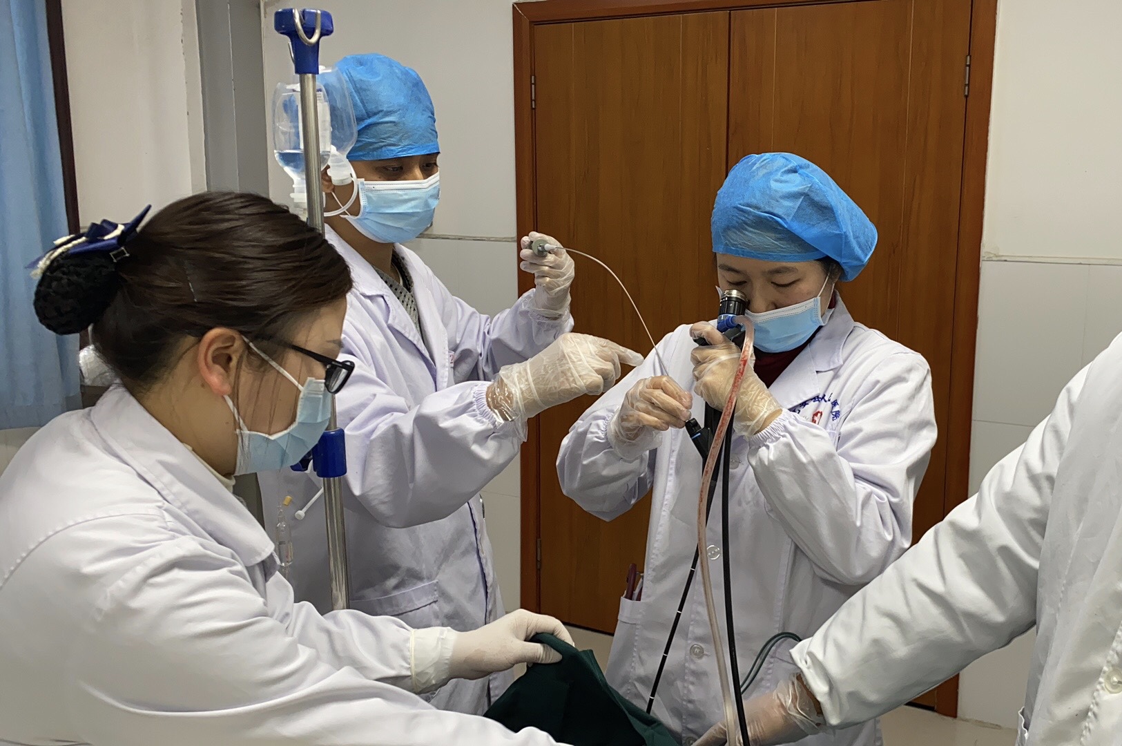 我院陈昉和苏广作为第三批援黔医护专家,11月上旬到达帮扶单位翁安县人民医院。在陈昉他们到来前,瓮安县人民医院的“内镜室”还是一间仓库,全新的镜片和还未拆开包装的机器静静的躺在仓库里。陈昉他们到来后,第一时间开展了帮扶工作座谈会,摸底医院、科室、设备情况,了解发展需求,制定了帮扶计划。为节省时间,陈昉自掏腰包购买了内镜所需的耗材,和广州市红十字会医院洪泽鑫等医生组成硕士医师组,从无到有,帮助当地建起标准化的呼吸病专科。