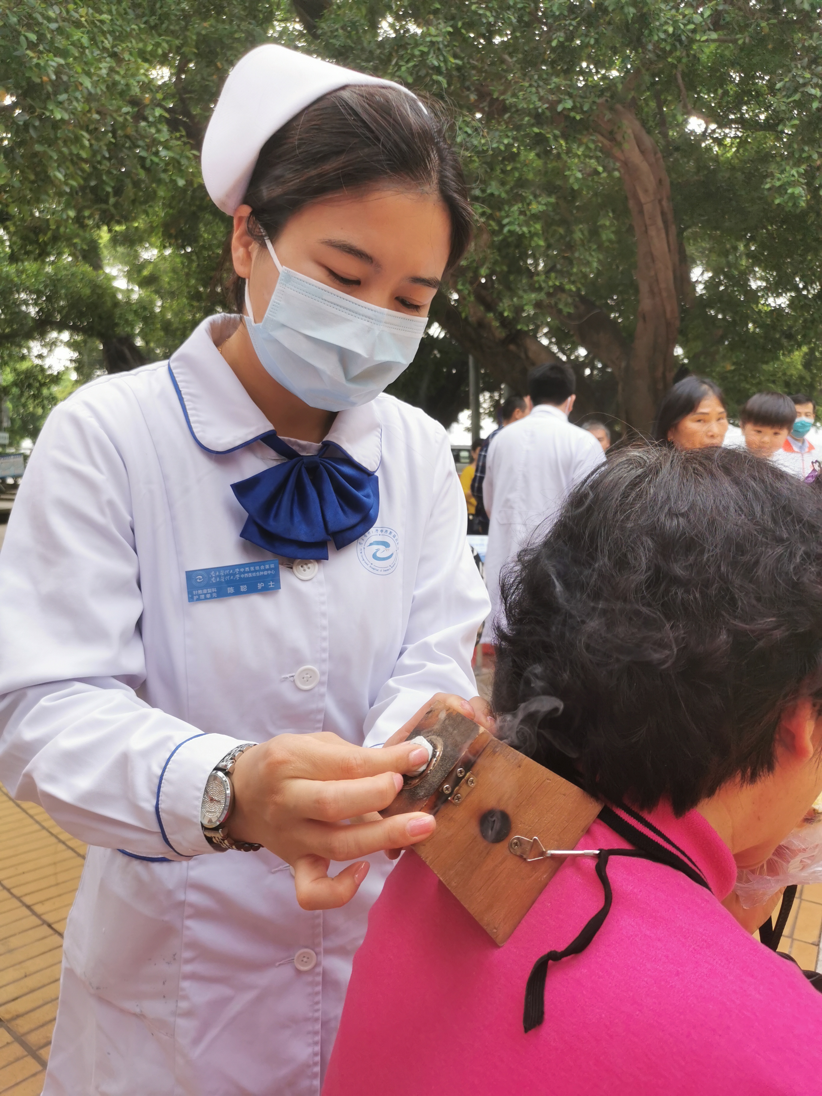 (护理人员为群众进行特色中医护理操作——艾灸)
