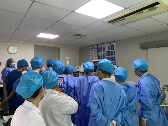 3月12日下午,大会为南方医科大学南方医院、广东省第二人民医院、中国科学院大学深圳医院、福建医科大学附属第二医院、广西医科大学第一附属医院、南部战区空军医院、广东省中医院珠海分院、暨南大学附属第一医院潮汕医院、南方医科大学深圳医院等18家医院呼吸介入病专家展示呼吸内镜核心技术,由我院冯起校主任团队在5小时内完成8台胸部疾病光动力治疗手术,其中6台气道肿瘤光动力,2台胸膜腔肿瘤光动力治疗,迄今单日胸部疾病肿瘤光动力治疗量为国内最多,引起观摩专家赞叹。专家们对我院光动力学治疗水平纷纷给予高度评价。