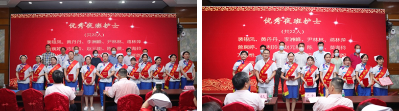会上表彰“优秀夜班护士”22名、 “优秀护士”28名、 “静脉输液能手”6名、 “微笑天使”5名、 “优质护理服务示范单位” 1个、“中医护理特色疗法” 6项、 “优秀护士长”4名、 “优秀护理单元”5个。