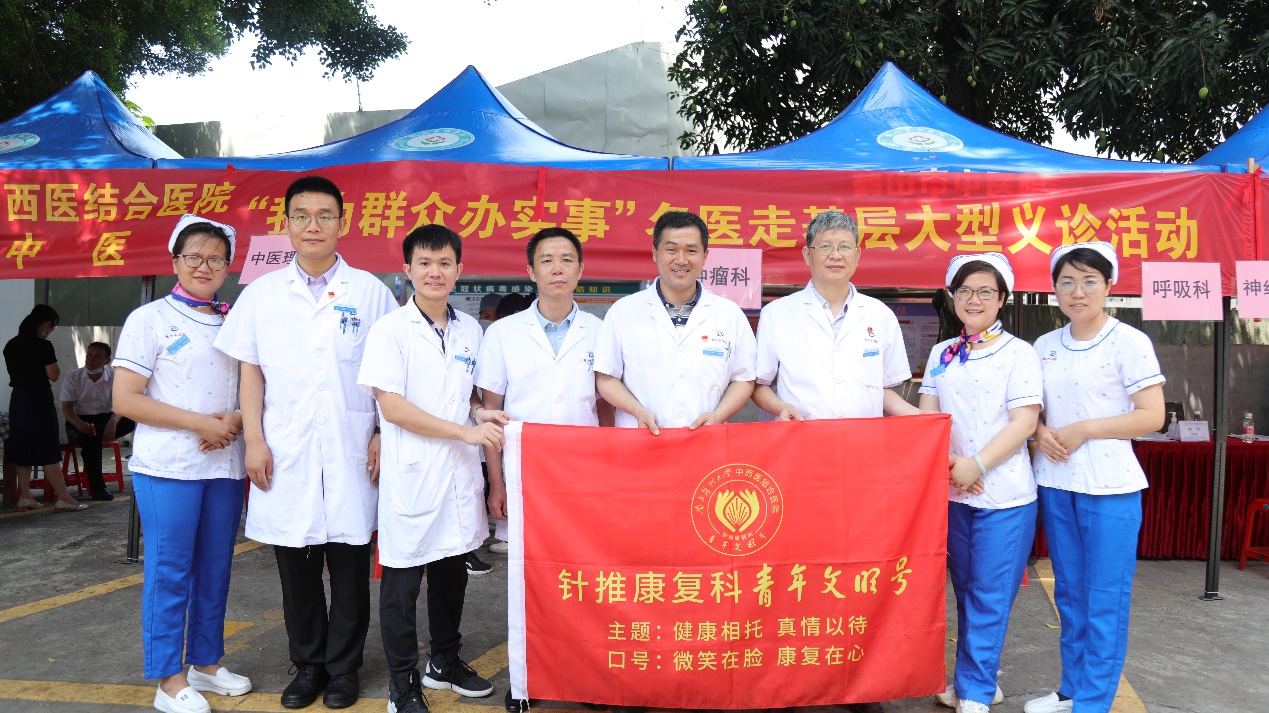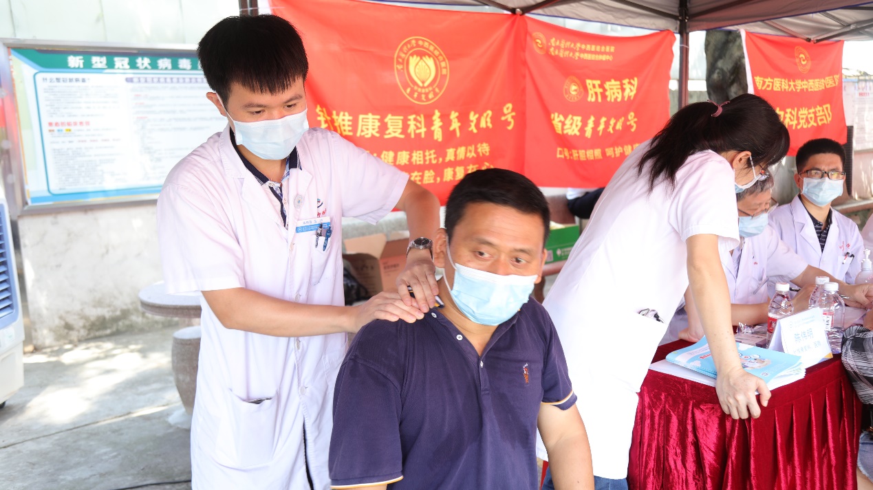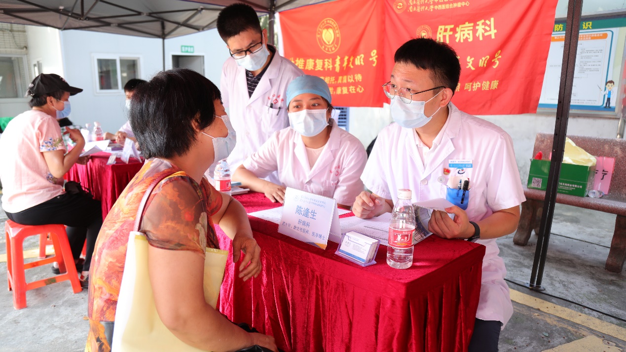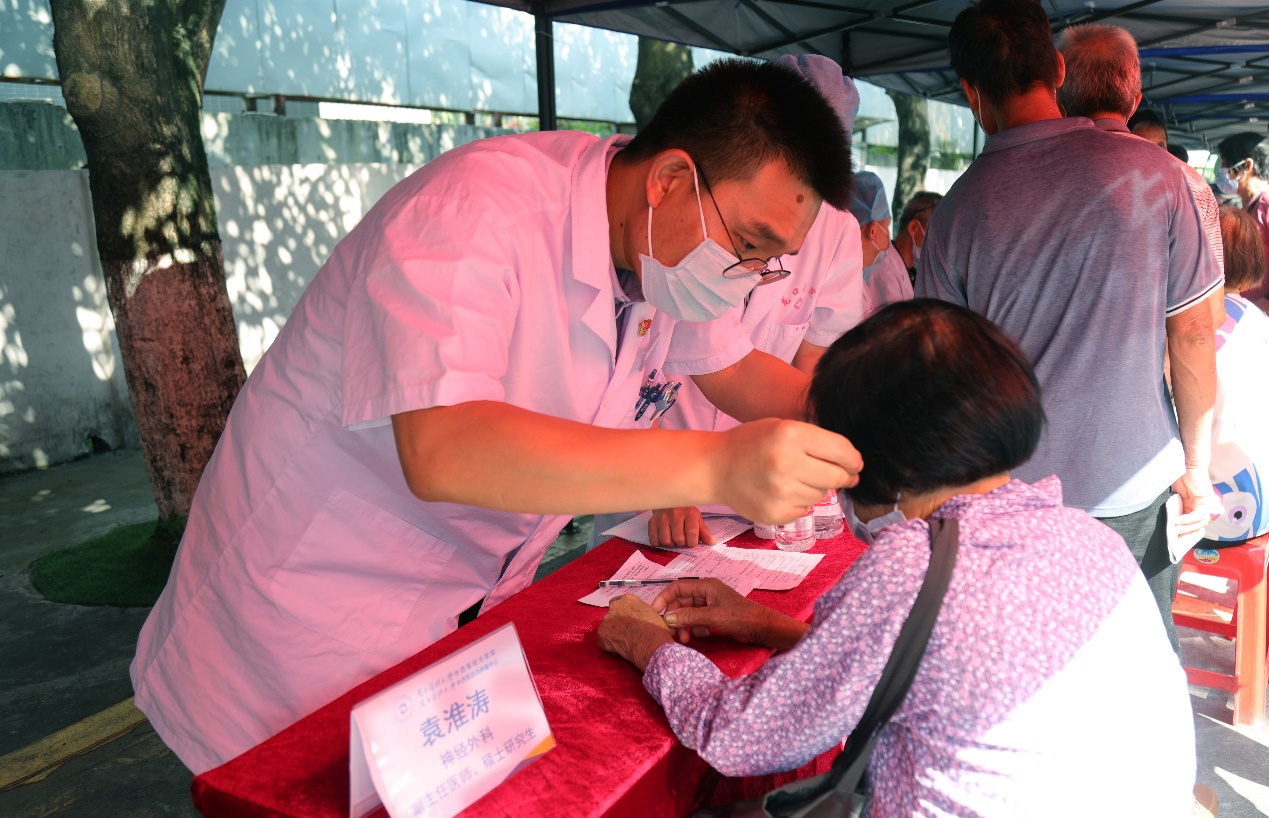 我院党委委员、神经医学中心兼神经外科主任陈陆馗教授、针推康复科主任周国平教授、骨伤科学术带头人汪青春教授、肝病科副主任陈逢生、心血管科副主任医师薛进平、脑病科副主任医师林煜、神经外科副主任医师袁淮涛、呼吸科/胸部肿瘤内科主治医师任玺、神经外科主治医师张建锋、针推康复病区护理单护士长丁玲英、脑病科护理单元副护士长李晓红、外科第一护理单元副护士长邓榆姝、针推康复科医师陈伟明等专家参与了义诊活动,为鹤山当地群众的健康把脉。