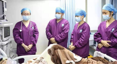 5月12日,鹤山市中医院ICU刚开科的第二天下午,ICU就收治了第一例重症患者,这是一位因近日咳嗽、胸闷气促就诊、入院时突发昏迷的老太太。蔡医生和值班医生第一时间接诊,发现患者面色紫绀,四肢冰冷,呼吸微弱,脉搏细弱,瞳孔对光反射消失,情况危急,立即组织抢救,给予球囊辅助通气,同时护理团队立刻给予接心电监护、建立静脉通道、抽血检验,并配合医生准备气管插管、吸痰、调试呼吸机连接管路、深静脉穿刺等急救操作。经过ICU医护团队的紧密配合,患者的面色很快由紫绀恢复红润,各项生命体征逐渐趋向平稳,当天晚上即恢复神志。经过2天的综合治疗,患者顺利拔除气管插管,并于入院第4天顺利转出ICU。