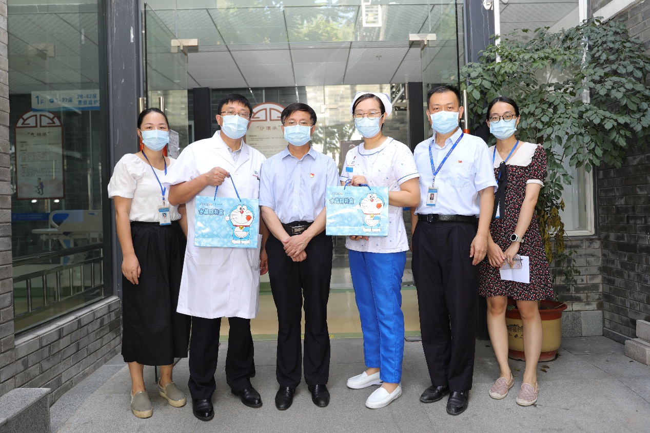 6月11日上午,我院工会开展“水晶一夏,‘粽’是安康”端午节慰问活动,由李爱民院长、皮玲副书记、潘清川副院长、朱晓光分管院领导带队,为战斗在一线的工作人员送去“水晶粽”节日慰问品。