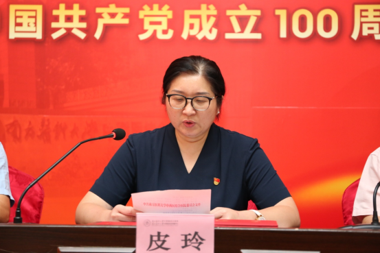 医院党委副书记皮玲宣读了《中共南方医科大学中西医结合医院委员会关于表彰优秀共产党员、优秀党务工作者和先进基层党组织的决定》