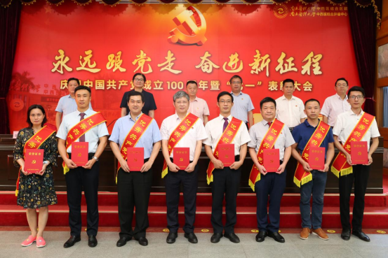 我院郑大勇同志获得学校“模范共产党员”称号;皮玲同志获得学校“模范党务工作者”称号;吴佳仪、蔡红兵、陈陆馗、周国平、黎洪展、黄刚、黄建强、钟伟丽等8位同志获得学校优秀共产党员称号;机关第二党支部、肿瘤中心党支部等2个党支部获得学校“先进基层党组织”称号。