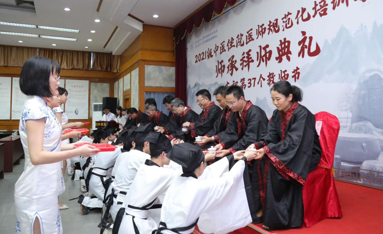 9月10日是全国第37个教师节,为了更好地贯彻落实传统医学师承精神,完善中医药师承和教育制度,我院作为国家中医住院医师规培基地,于教师节当天下午在医院学术会议厅隆重举行2021级规培学员师承拜师大会,10位师承导师现场收徒。医院领导、师承人员及规培基地教员近100余人共同见证此次拜师盛会,营造了隆厚的尊师重教和中医传承氛围。