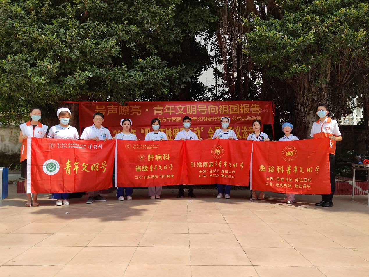9月17日上午,我院在2021年“服务百姓健康行动”全国大型义诊活动周之际,组织开展“青年文明号开放周”公益志愿活动,来自医院肝病科、针推康复科、急诊科、骨伤科等青年文明号集体的号手,与志愿者一起走进赤沙公园,11名青年医务工作者共为63名街坊的健康办实事。