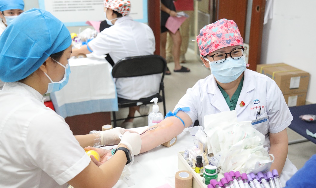 涓涓热血,拳拳爱心,南方中西医人用热血浇灌生命之花,以实际行动落实着为群众办实事活动,谱写着医者仁心大爱,成为无偿献血的带头人,以实际行动展现救死扶伤的白衣天使风采,向祖国母亲72岁生日献上一份厚礼。