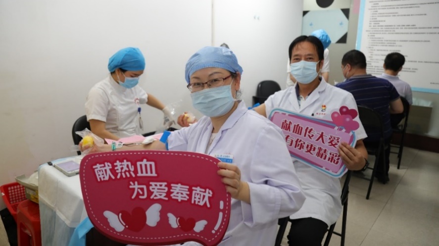 “我们两个都是医务工作者,捐献可以再生的血液,拯救不可重来的生命,是很光荣的一件事。” 外科第四护理单元护士长盛小燕和药学部主管药师黎赛说。