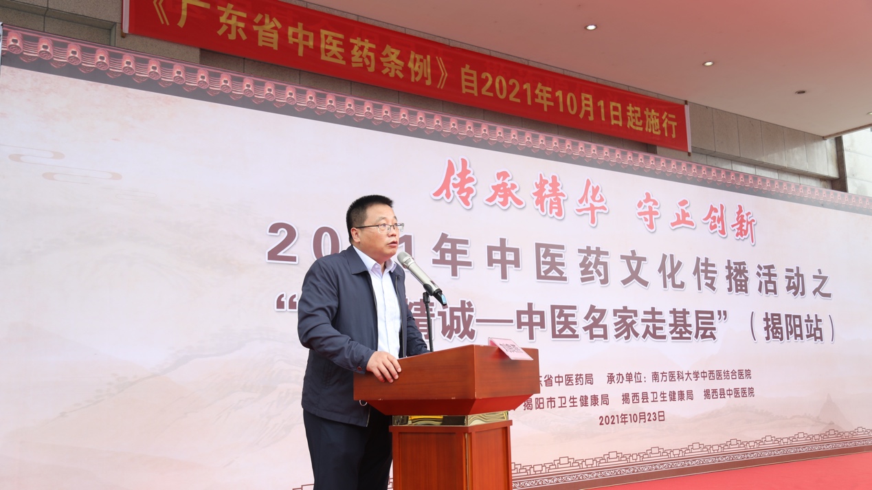 10月23日上午,南方医科大学中西医结合医院院长李爱民、揭阳市卫生健康局中医科科长袁杰群、揭阳县卫生健康局副局长王继勇、揭西县中医医院院长刘良燕等领导、专家和嘉宾出席活动开幕仪式。