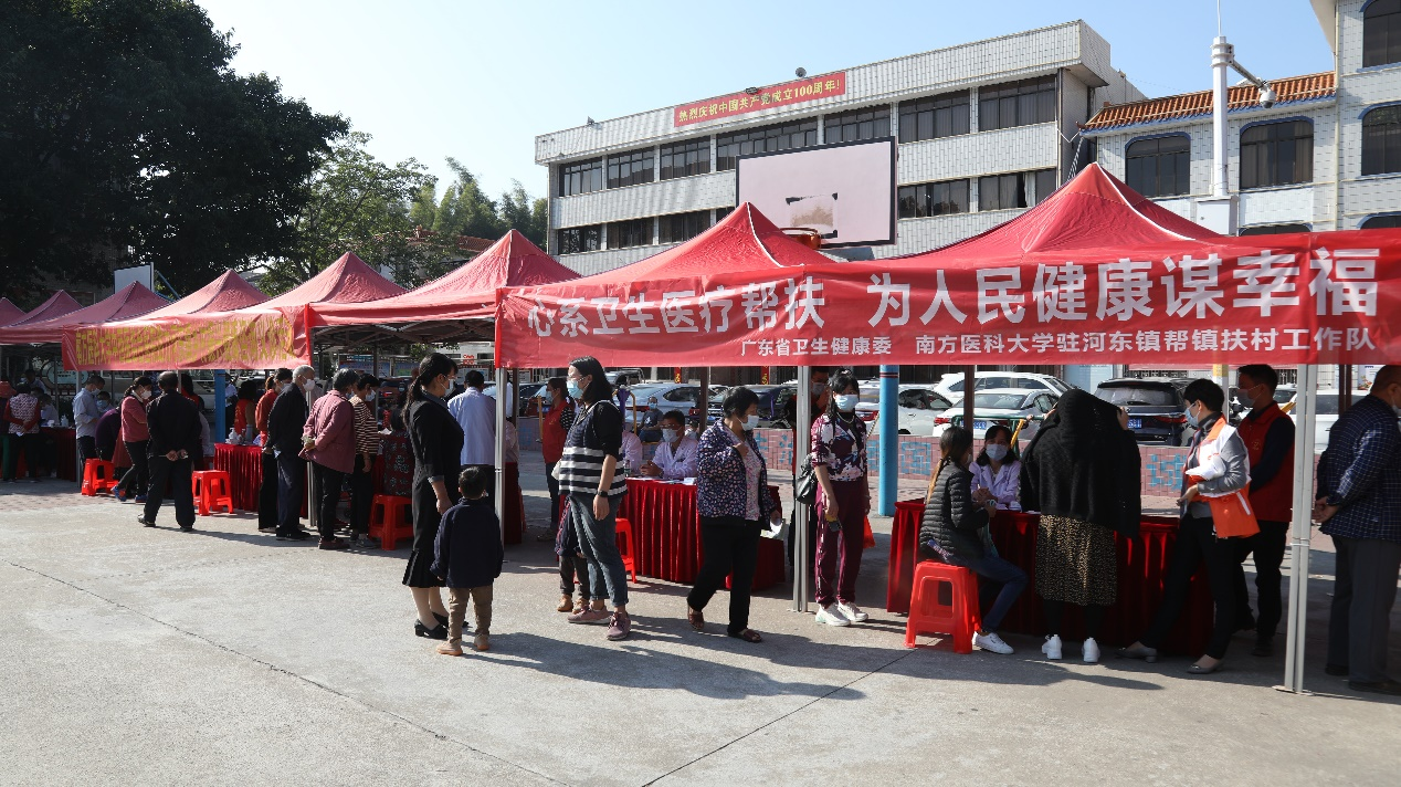 2021年11月21日,南方医科大学中西医结合医院院长李爱民带领医院贺运河学雷锋志愿者团队15名专家来到梅州市五华县河东镇,与广东省卫生健康委、南方医科大学驻河东镇帮镇扶村工作队开展助力乡村振兴健康咨询义诊活动。