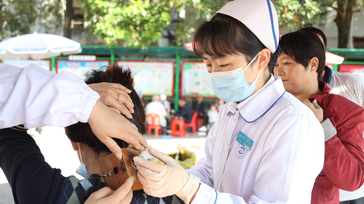 南方医科大学中西医结合医院心血管病科护理单元护师冷丹丹为群众提供艾灸等中医特色护理服务
