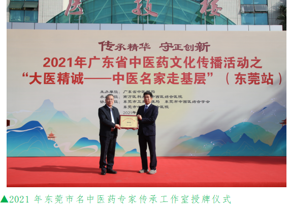 活动现场,东莞市卫健局二级调研员殷炯棠为东莞名中医高舜天工作室授牌。