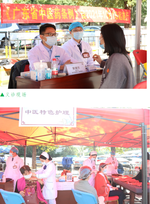 当天上午,南方医科大学中西医结合医院联合东莞市中西医结合医院共21位专家为群众义诊。专家覆盖针灸、推拿、康复、肿瘤、妇科、骨伤科、神经外科、乳腺外科、甲状腺外科、泌尿外科、肛肠科、肾内科、内分泌科、心血管内科、皮肤科等领域。活动现场还为市民提供耳穴、刮痧等中医特色护理服务。