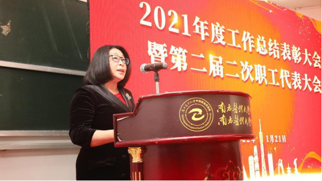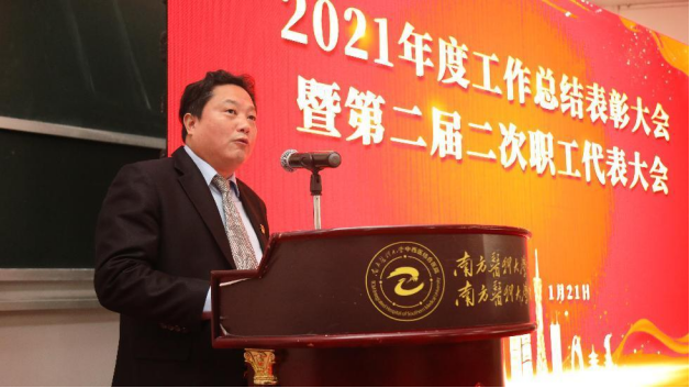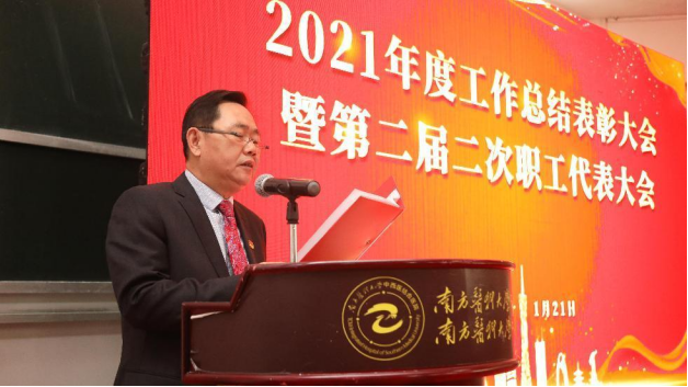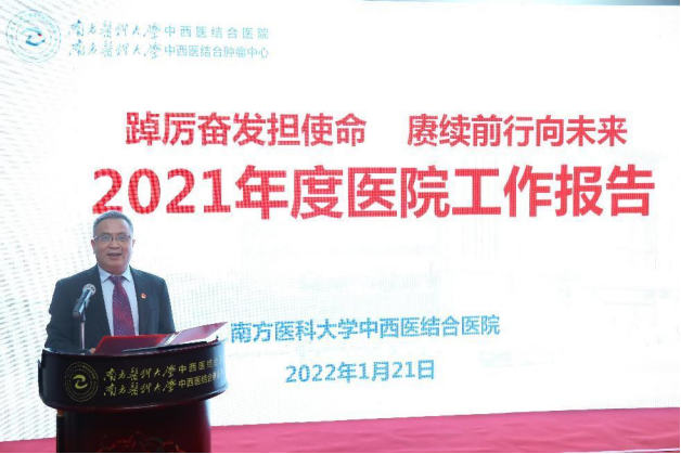 1月21日下午,南方医科大学中西医结合医院召开2021年度工作总结表彰大会暨第二届二次职工代表大会,总结2021年度工作,部署2022年度任务,表彰先进集体和个人。党委书记严冬主持会议,全体院领导、中层干部和职工代表共120余人参会。