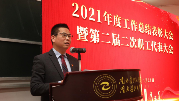 党委书记严冬作总结发言,首先向获奖集体和先进个人表示热烈的祝贺!向扎根一线,辛勤付出的广大干部职工表示诚挚的谢意!他提出四点意见:一是要坚定政治方向,以高质量党建引领医院高质量发展。不断巩固拓展党史学习教育成果,推动党建工作融入医院业务发展、人才和学科建设、医疗服务等各方面全环节。在做好常态化疫情防控的同时,着力做到“七个提升”。二是要主动出击,以项目申建为契机谋求医院发展新突破。要以国家中医药传承创新工程项目竣工为契机,进一步提升“南方中西医”的品牌知晓度和影响力。三是要培引结合,以创新机制为手段激发干事创业新活力。加强干部队伍建设,培养用好用活人才,“揭榜挂帅”人才引进,为医院发展提供强大人才智力支撑。四是要聚智凝心,以职代会为载体提升医院民主管理水平。