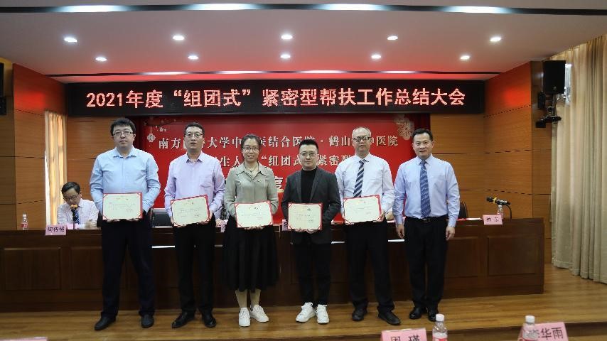 会上,罗超华局长为钟东、陈杰彬、翁勰、蔡佳辰、田新发五位帮扶专家颁发2021年优秀帮扶队员证书,并授予我院第二批帮扶团队2021年优秀“组团式”帮扶团队称号。鹤山市中医院吕世权院长为第三批帮扶专家颁发聘书。
