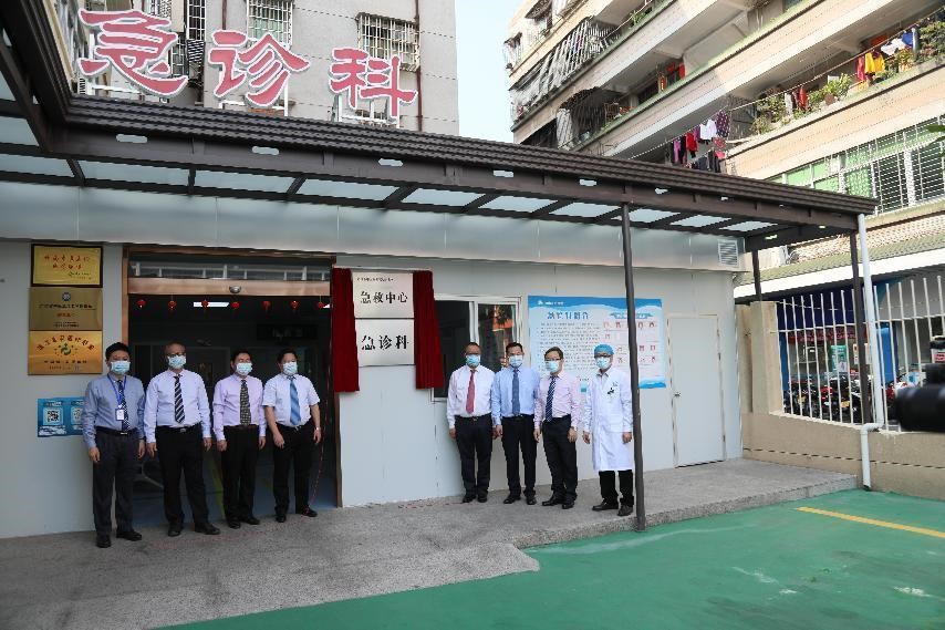 总结会前,鹤山市中医院邀请我院共同为鹤山市中医院医共体急救中心揭牌。近两年,在我院帮扶期间,鹤山市中医院相继成立了康复科、普外科、住院妇科、血液净化中心、重症医学科、治未病中心、急救中心蛇伤救治中心七大专科。