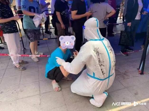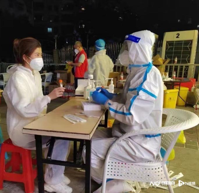 朱立鹏医生为女朋友采了当天最后一份核酸。