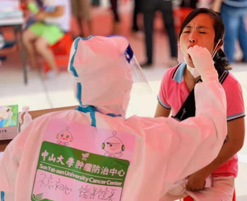 4月10日,广州医科大学附属肿瘤医院集结医护人员出发白云区、番禺区支持核酸采样工作。