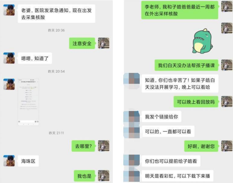 洗漱完毕后,黄春燕才留意到手机里学校已经下发了停课通知,她赶紧向老师“汇报”,细心的老师告诉她“你们也辛苦了!”,晚上可以陪孩子看网课回放。