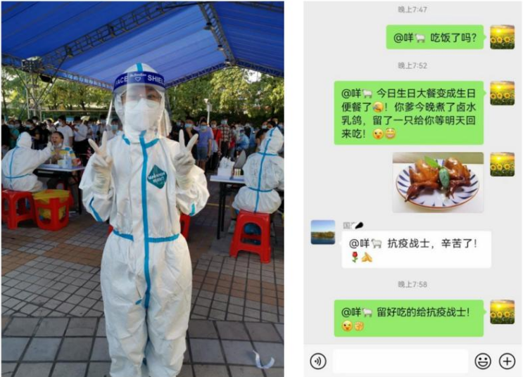 南方医科大学第五附属医院护理部副主任郑彬娜夫妇俩都坚守在防疫岗位上,家里的老小便托付给邻居。热心的邻居不仅管饭,还带着老小下楼做核酸。“我俩都是共产党员,有情况我们一定上。”郑彬娜说,“没有大家哪来小家,近邻胜似远亲,感谢好邻居。”