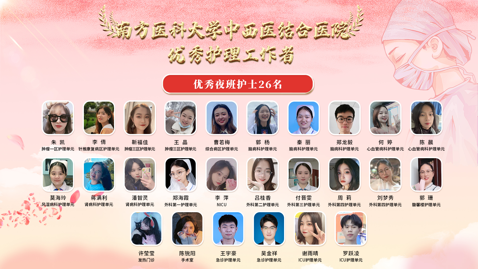会上,医院党委书记严冬同志宣读了《关于表彰2021-2022年度南方医科大学共青团工作先进集体和优秀个人的决定》《关于表彰2021-2022年度南方医科大学中西医结合医院共青团工作先进集体及优秀个人的通报》《关于表彰2021年度优秀护理工作者的通报》,寄望全院青年、护士以受表彰人员为学习榜样,以实际行动向党的二十大献礼,迎接党的二十大胜利召开。