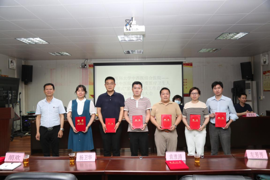 座谈会上,怀集县卫健局钱强书记、怀集县中医院梁朝旭院长分别为2021年度帮扶队员颁发荣誉证书和为新一届队员颁发聘任证书。