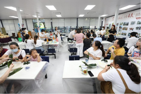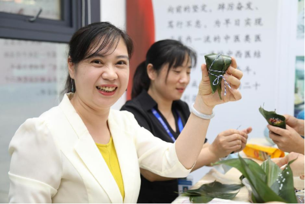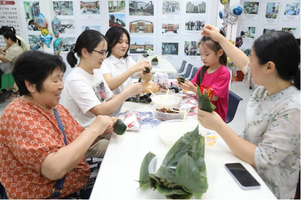 下午三点,员工及其家属、孩子们齐聚活动现场,笑语喧腾,热情高涨,在老师的指导下大朋友、小朋友们纷纷认真学习包粽子。粽叶在大家的手中飞速旋转,卷粽叶、填糯米、打绳结,有的一气呵成,洁白的糯米瞬间就被包进粽叶中,变成了一个个棱角分明的粽子,有的已经开始当起了“小老师”,有的包出别出心裁的粽子,还不忘展示一番,迎来满堂欢笑。