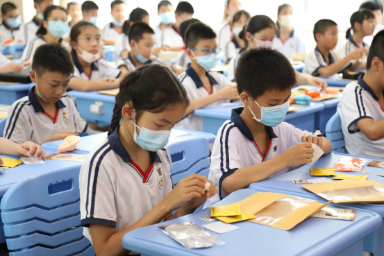 为了让学生们充分感受并体验到中医药文化,张蕊和钟一萍还带来了许多材料,她们带着学生们一起制作中药护眼眼罩,把课堂气氛推向了高潮。