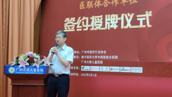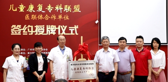 当天,广州市医疗行业协会秘书长许秋霞、南方医科大学中西医结合医院针推康复科周国平主任、南方医科大学中西医结合医院副主任杨路,广州天使儿童医院程旭生院长等领导和专家出席了授牌活动。